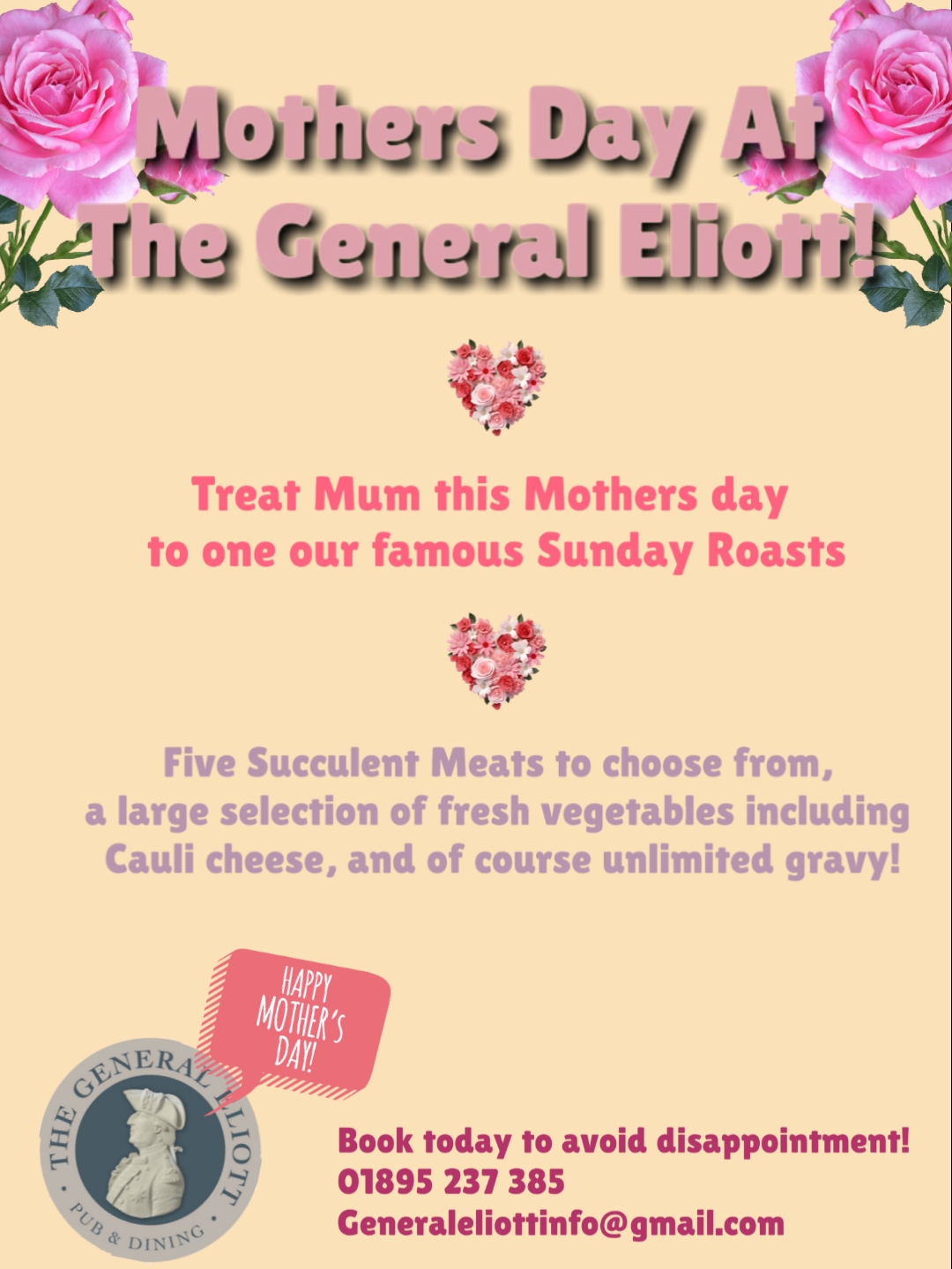 Celebrate Mother’s Day at The General Eliott with one of our famous Sunday roasts 💐